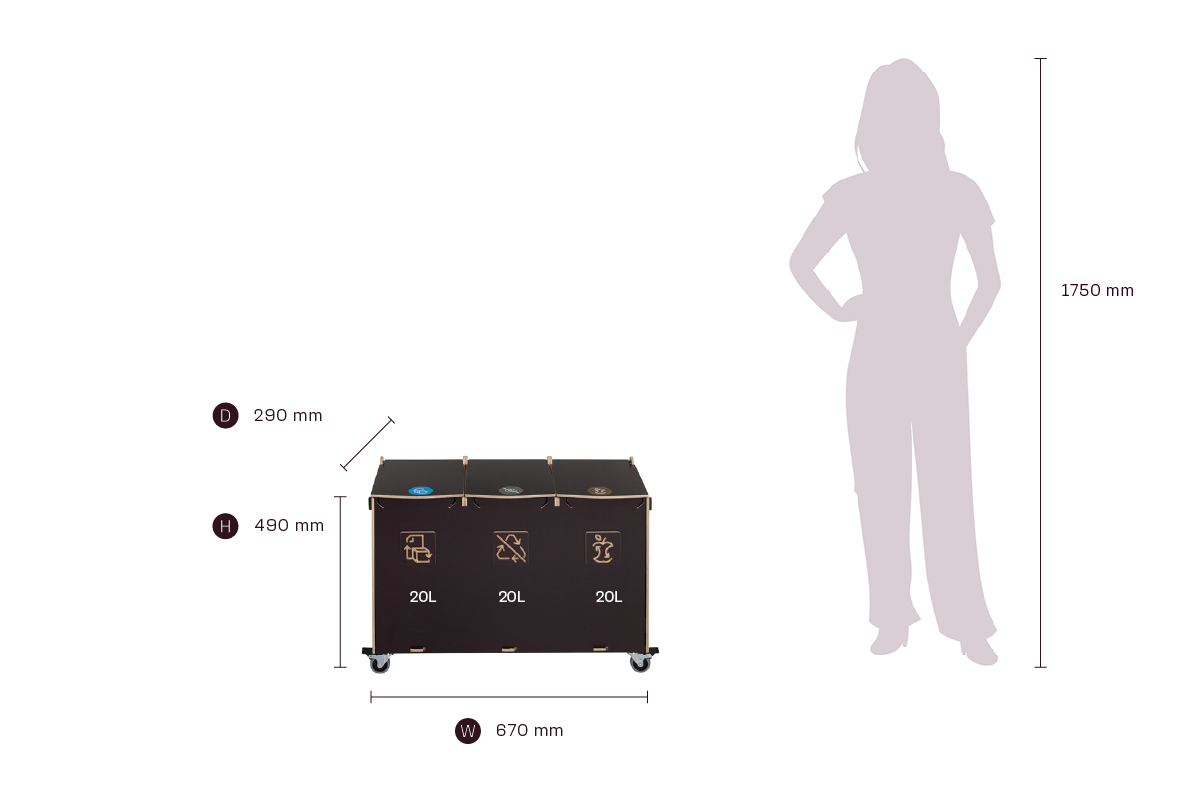 Med sin kompakte størrelse og effektive kapacitet kombinerer Sorta holdbare krydsfinermaterialer med funktionelt design, hvilket gør den til en pålidelig løsning til organiseret og ansvarlig affaldshåndtering i professionelle miljøer.