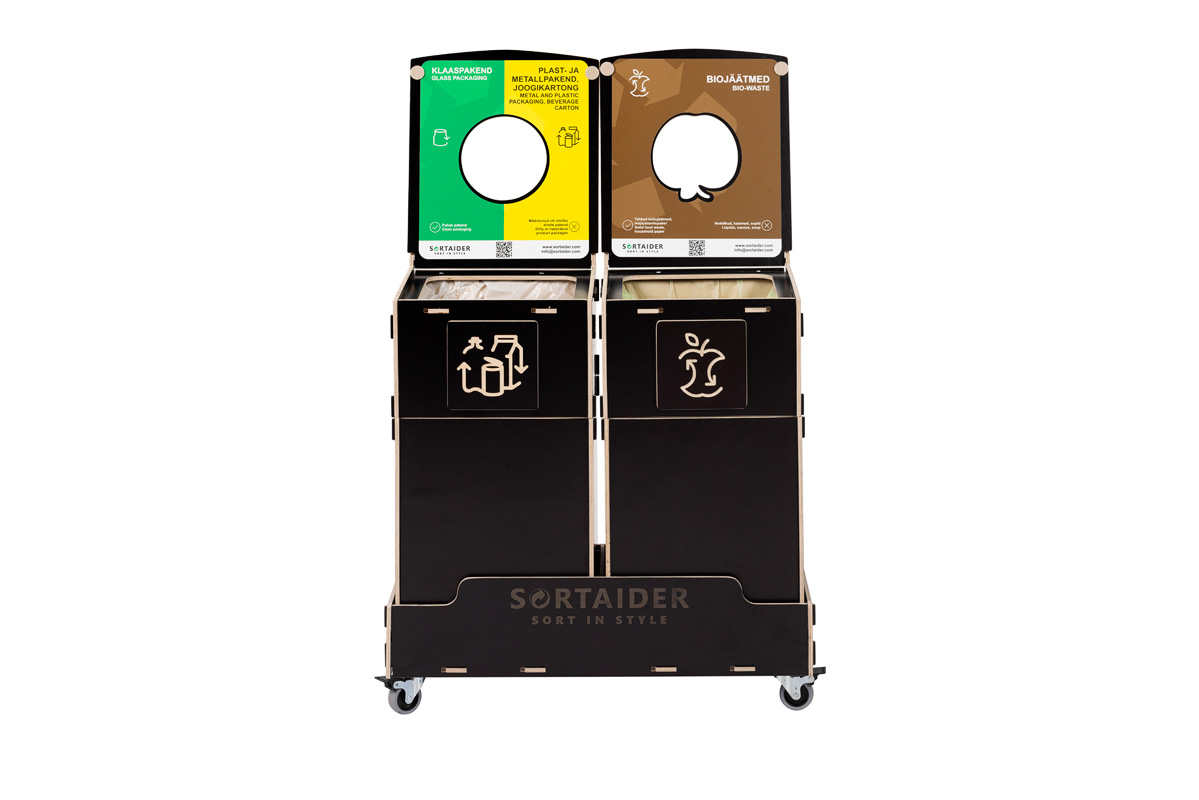 Udstyret med låsbare hjul, tydelige sorteringssymboler og skraldespande af krydsfiner i høj kvalitet forener den praktisk funktionalitet med nordisk inspireret design. Et Sortaider-produkt på 7,1 kg sparer ca. 7,9 kg CO₂, hvilket gør hver skraldespand til et meningsfuldt skridt mod bæredygtighed.