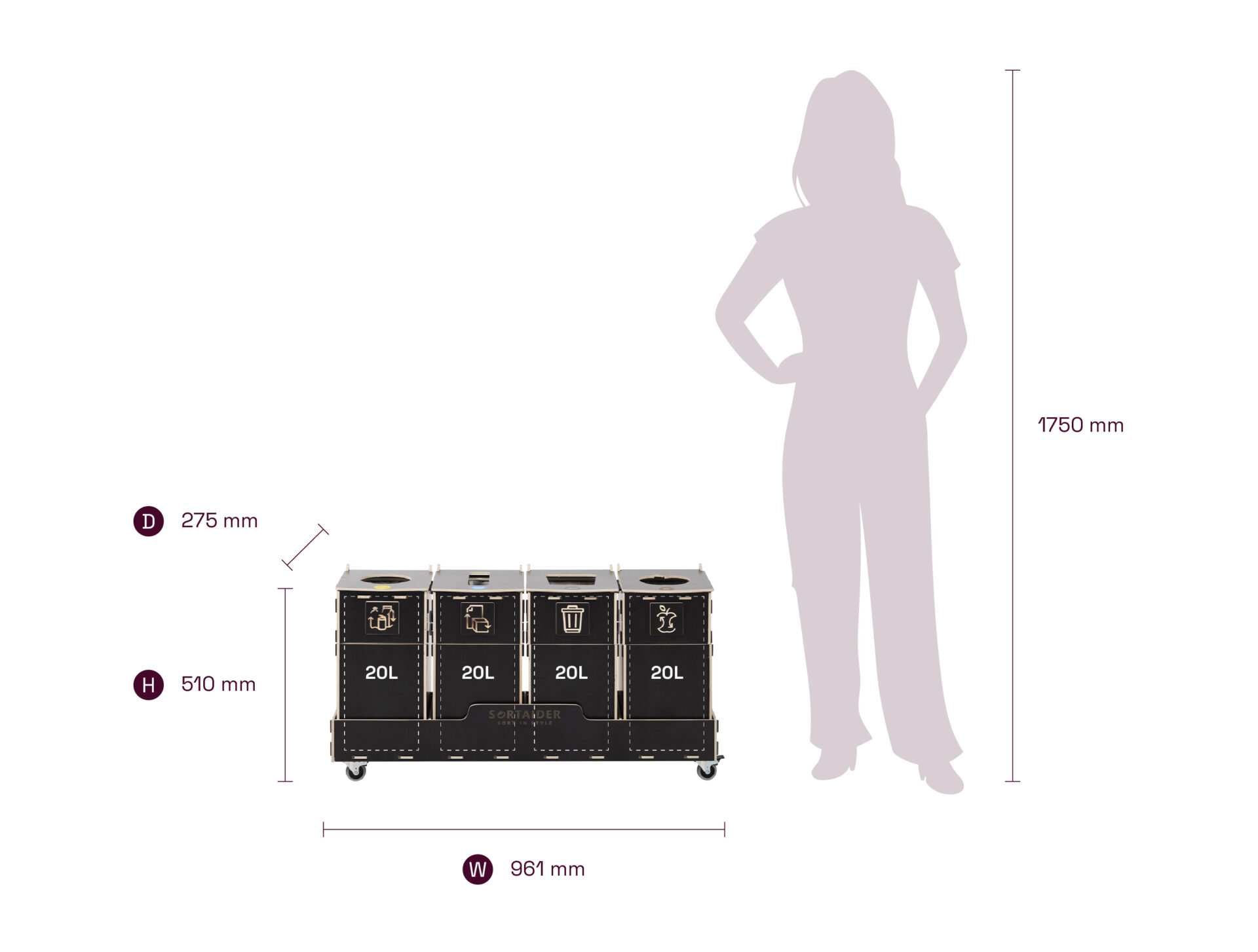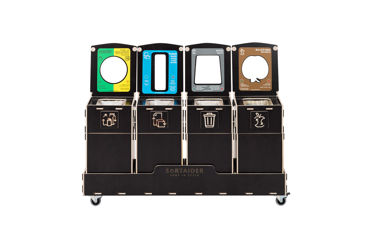 Sortaider er en elegant og kompakt affaldssorteringsstation. Med 1–5 separate rum gør den affaldssorteringen nem og effektiv på kontorer, skoler og i offentlige miljøer.