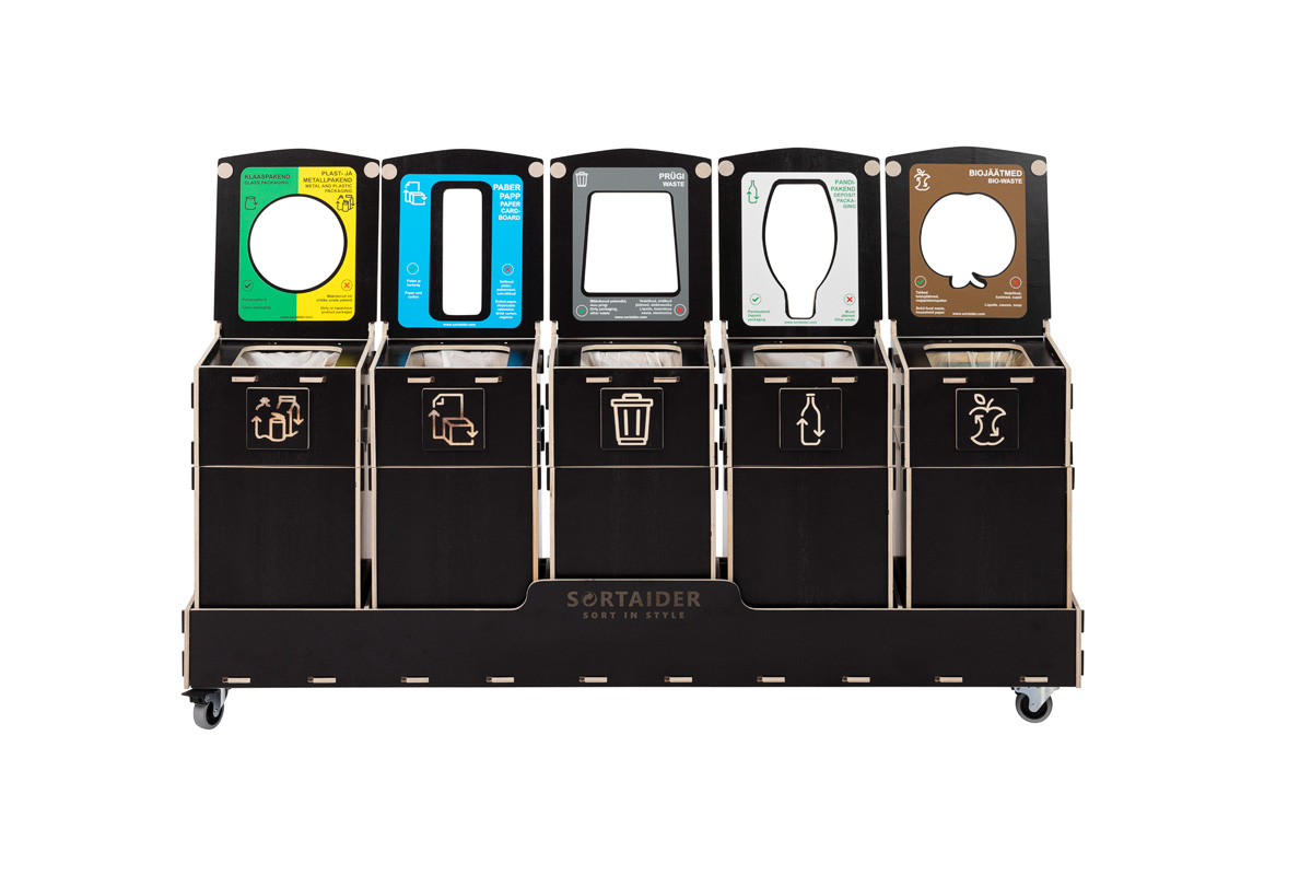 Sortaider er en elegant og kompakt affaldssorteringsstation. Med 1–5 separate rum gør den affaldssorteringen nem og effektiv på kontorer, skoler og i offentlige miljøer.