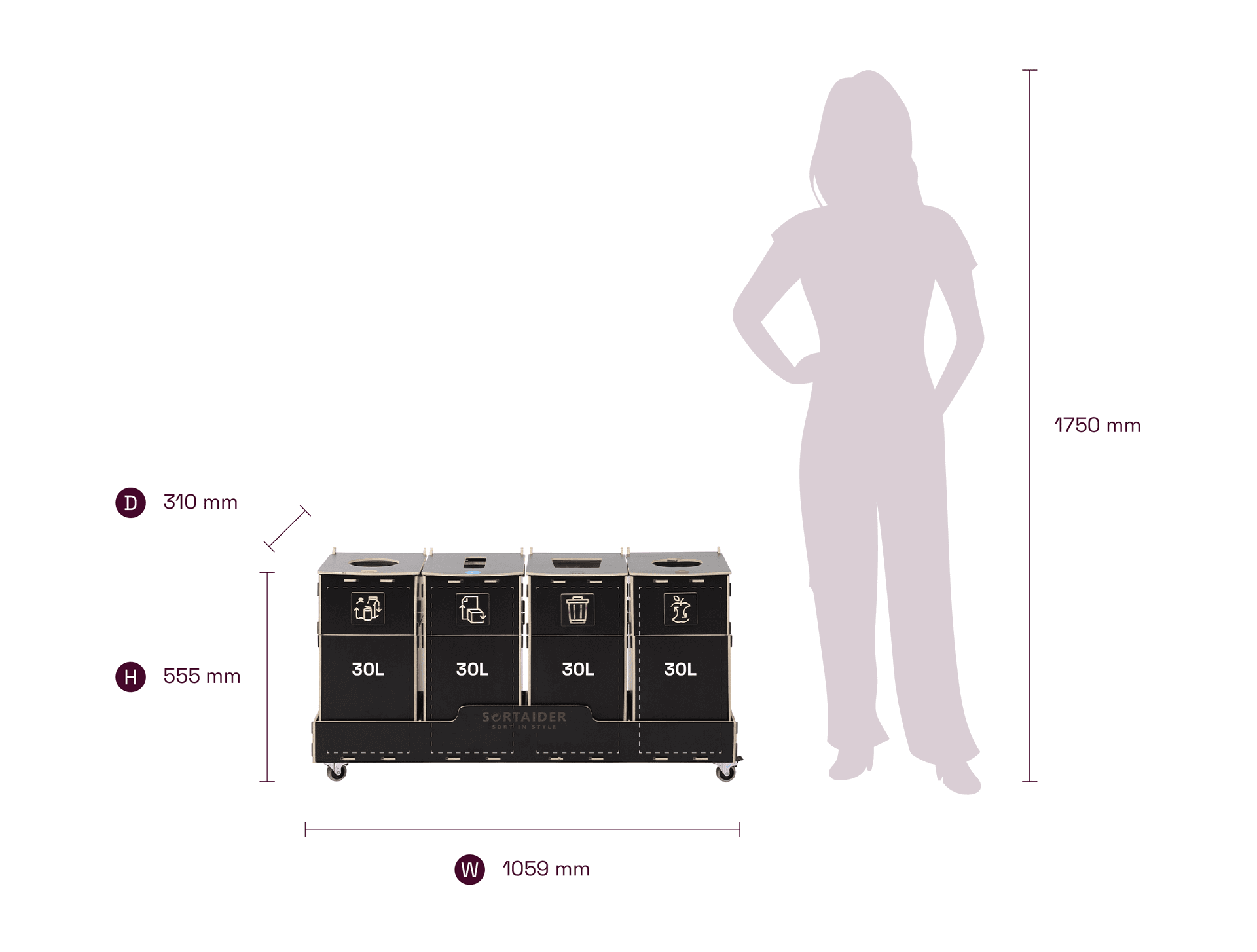 Sortaider er en elegant og kompakt affaldssorteringsstation. Med 1–5 separate rum gør den affaldssorteringen nem og effektiv på kontorer, skoler og i offentlige miljøer.