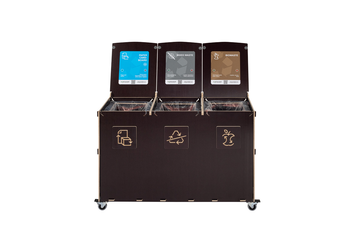 Kompaktin kokonsa ja tehokkaan kapasiteettinsa ansiosta Sorta yhdistää kestävät vanerimateriaalit ja toimivan muotoilun, mikä tekee siitä luotettavan ratkaisun järjestelmälliseen ja vastuulliseen jätehuoltoon ammattimaisissa ympäristöissä.