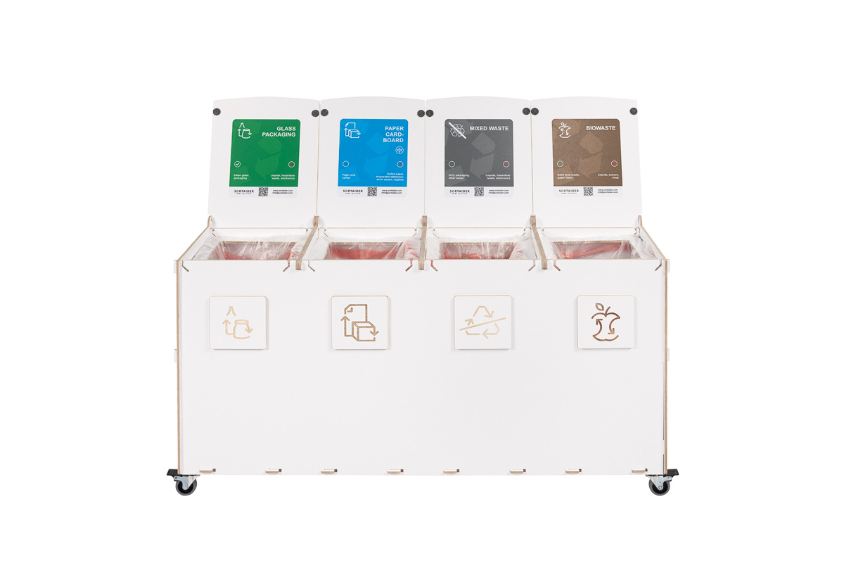 Kompaktin kokonsa ja tehokkaan kapasiteettinsa ansiosta Sorta yhdistää kestävät vanerimateriaalit ja toimivan muotoilun, mikä tekee siitä luotettavan ratkaisun järjestelmälliseen ja vastuulliseen jätehuoltoon ammattimaisissa ympäristöissä.