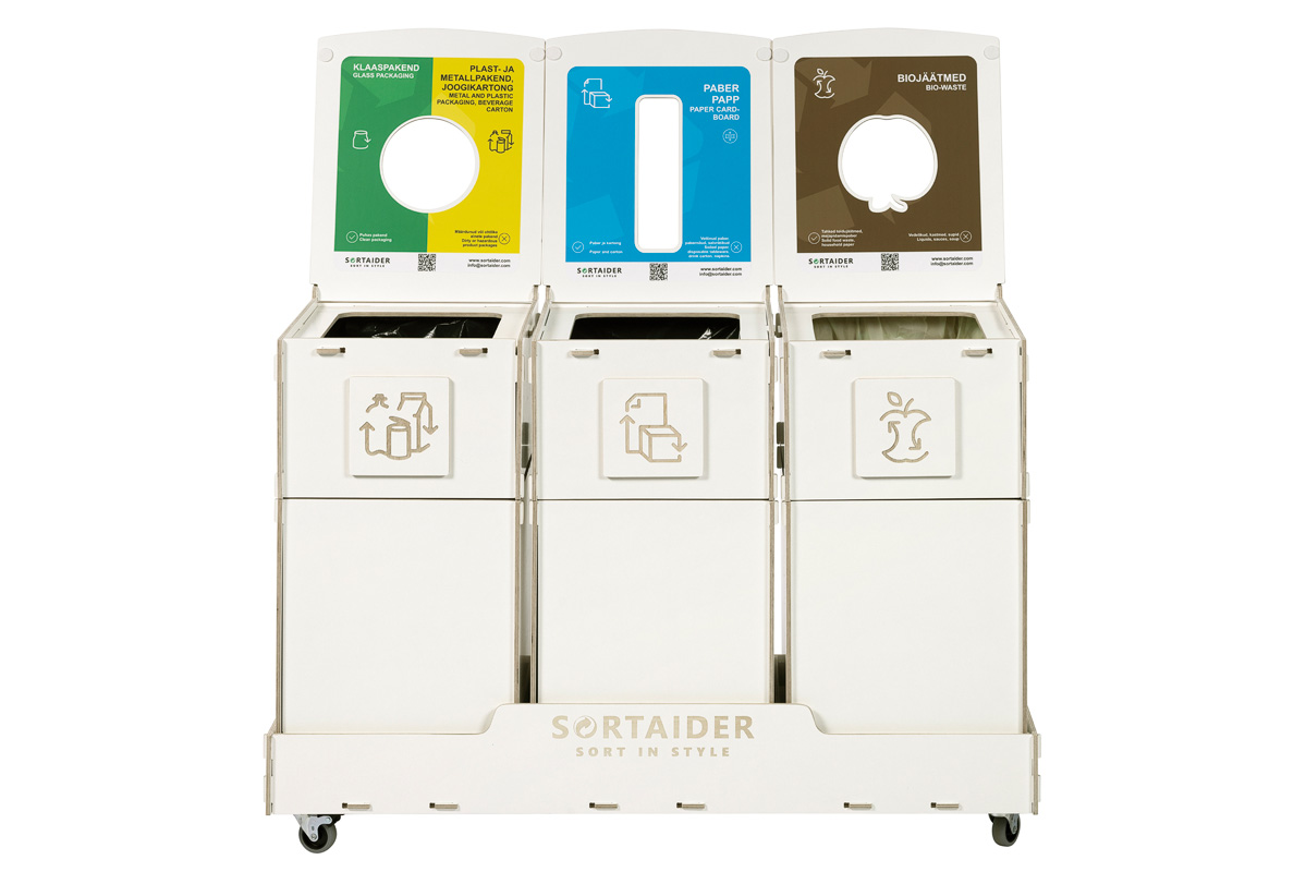 Lukittavilla pyörillä, selkeillä lajittelusymboleilla ja korkealaatuisilla vanerilaatikoilla varustettu laite yhdistää käytännöllisyyden ja pohjoismaisen inspiraation saaneen muotoilun. 28,3 kg painava Sortaider-tuote säästää noin 29,1 kg CO₂, joten jokainen laite on merkityksellinen askel kohti kestävää kehitystä.