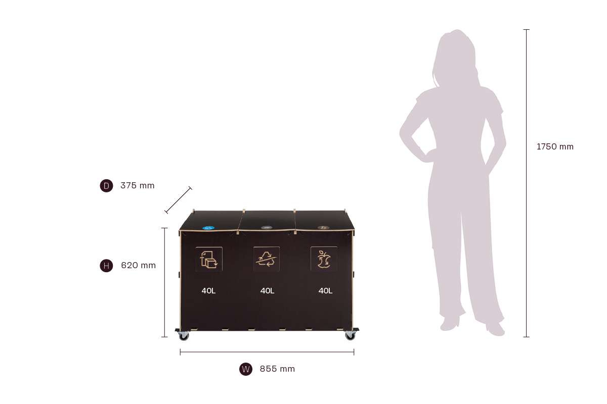 With its compact footprint and efficient capacity, Sorta combines durable plywood materials with functional design, making it a reliable solution for organized and responsible waste management in professional environments.