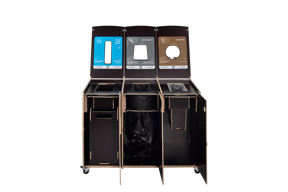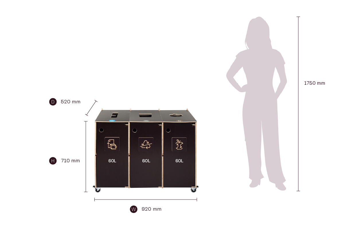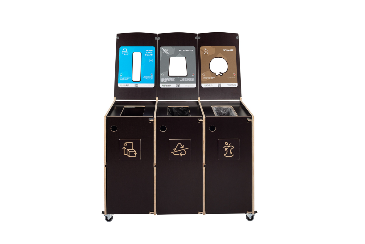 Tydlig visuell vägledning säkerställer korrekt sortering, medan dörrar som öppnas framåt och låsbara hjul gör den dagliga hanteringen och skötseln enkel och effektiv. En idealisk lösning för kontor, skolor och offentliga miljöer som värdesätter design, anpassningsförmåga och hållbarhet.
