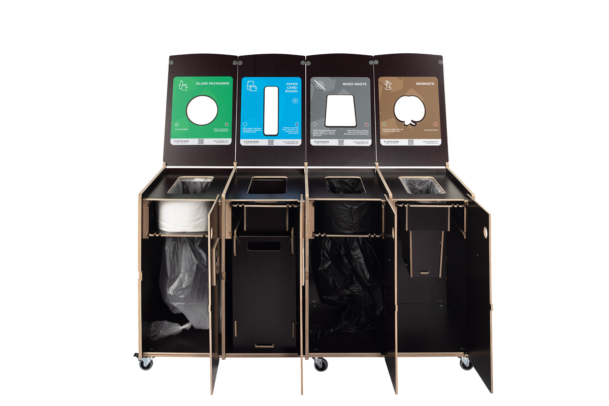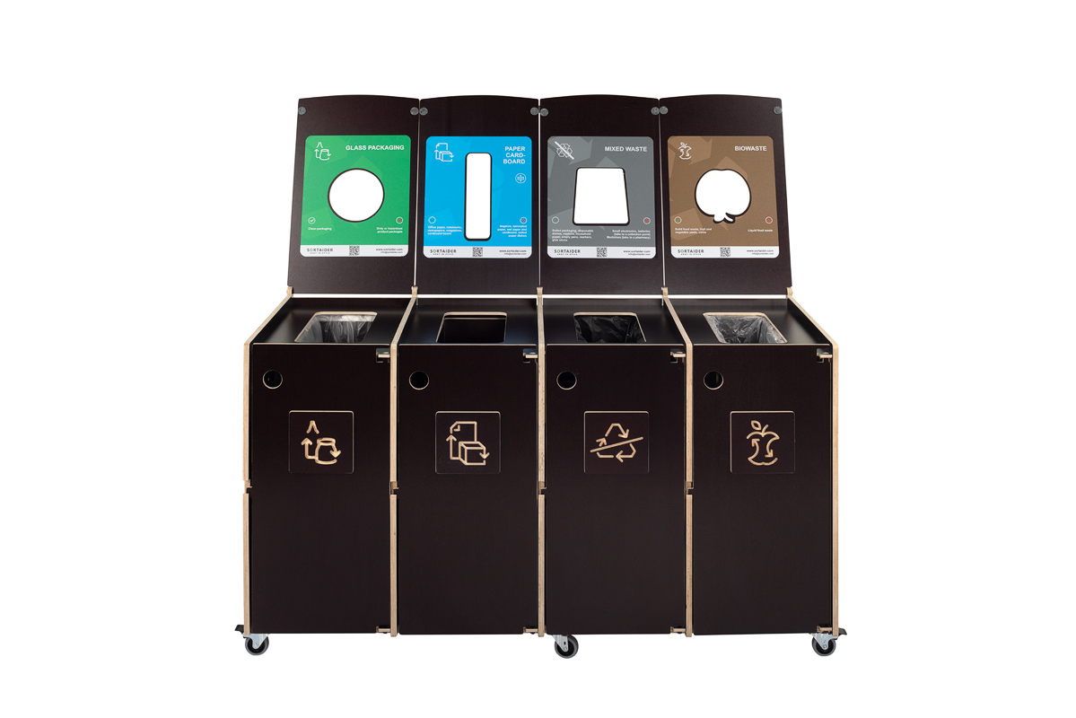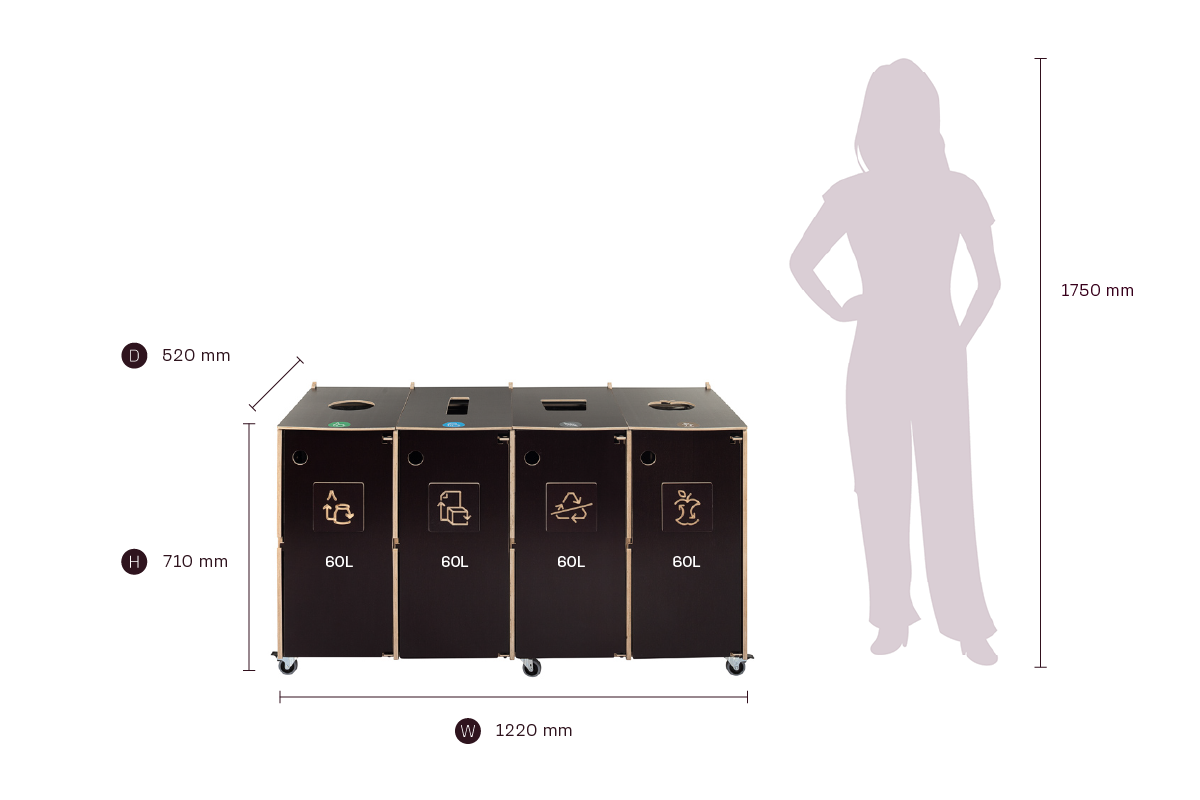 Tydlig visuell vägledning säkerställer korrekt sortering, medan dörrar som öppnas framåt och låsbara hjul gör den dagliga hanteringen och skötseln enkel och effektiv. En idealisk lösning för kontor, skolor och offentliga miljöer som värdesätter design, anpassningsförmåga och hållbarhet.