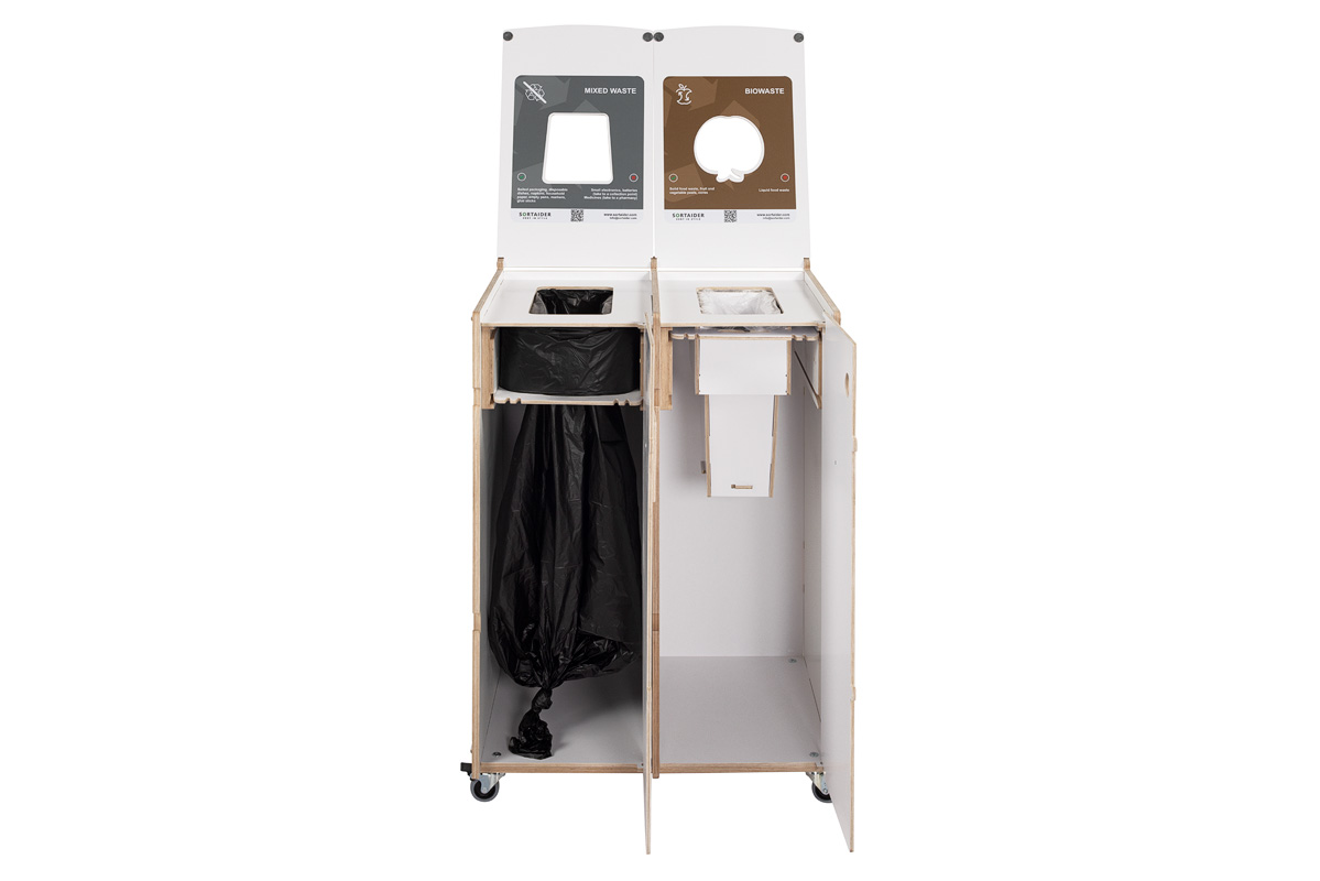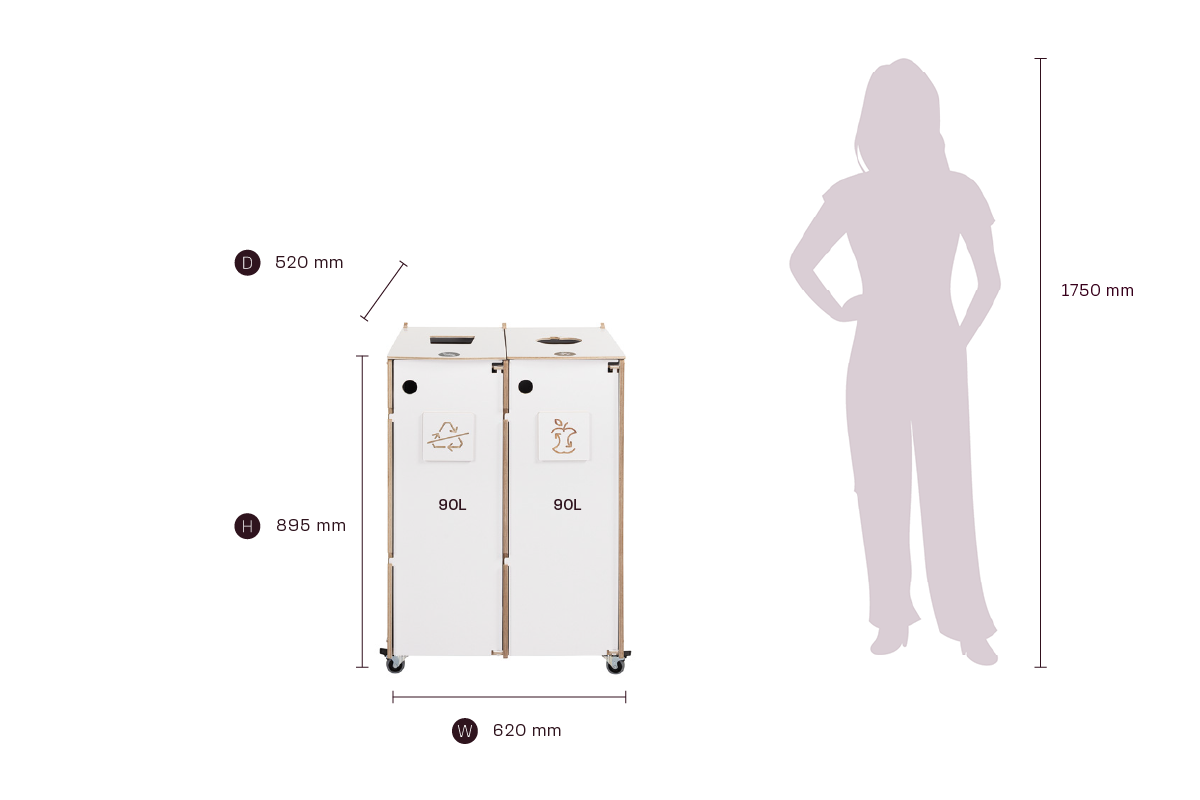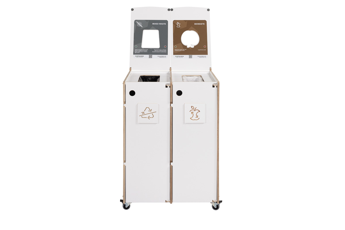 Clear visual guidance ensures correct sorting, while front-opening doors and lockable wheels make daily handling and maintenance simple and efficient. An ideal solution for offices, schools, and public interiors that value design, adaptability, and sustainability.
