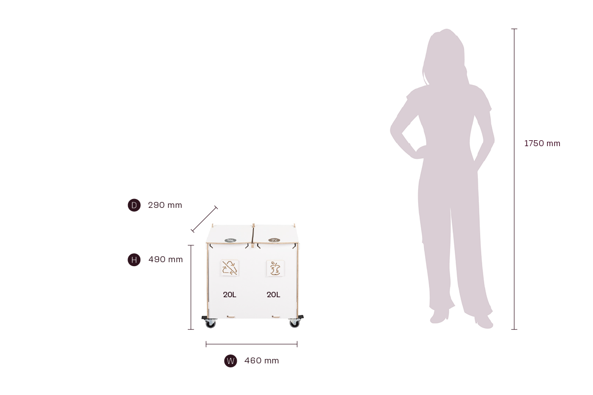 Med sin kompakta storlek och effektiva kapacitet kombinerar Sorta hållbara plywoodmaterial med funktionell design, vilket gör den till en pålitlig lösning för organiserad och ansvarsfull avfallshantering i professionella miljöer.