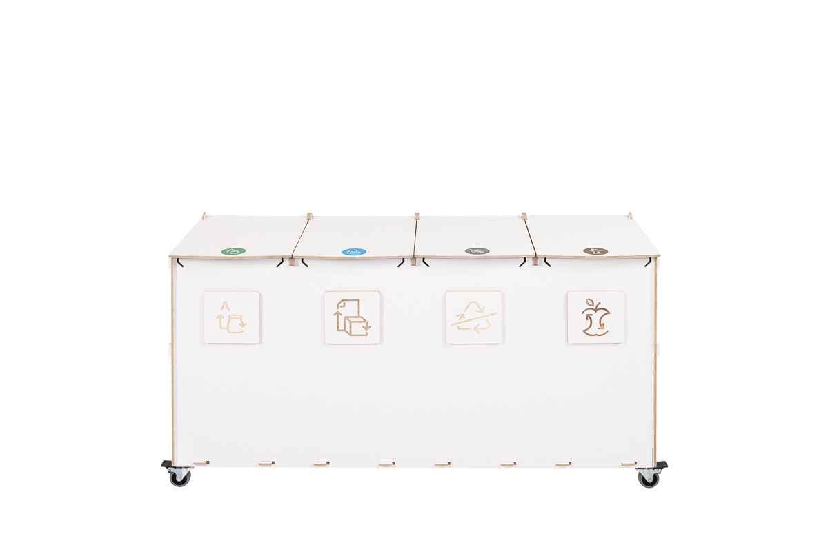Sorta är byggd för hållbarhet och funktionalitet och har fack av högkvalitativ plywood, låsbara svängbara hjul och flerspråkiga, färgkodade sorteringssymboler som underlättar korrekt avfallshantering. Den robusta konstruktionen är lämplig för miljöer med hög trafik, medan det verktygsfria systemet för byte av påsar säkerställer snabbt underhåll och hygienisk användning.