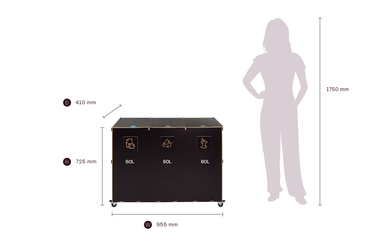 Med sin kompakta storlek och effektiva kapacitet kombinerar Sorta hållbara plywoodmaterial med funktionell design, vilket gör den till en pålitlig lösning för organiserad och ansvarsfull avfallshantering i professionella miljöer.