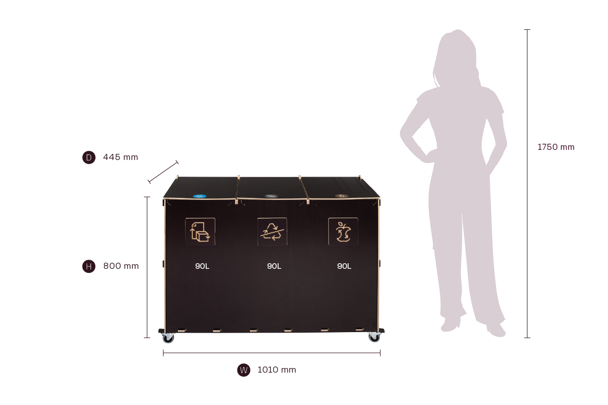 Med sin kompakta storlek och effektiva kapacitet kombinerar Sorta hållbara plywoodmaterial med funktionell design, vilket gör den till en pålitlig lösning för organiserad och ansvarsfull avfallshantering i professionella miljöer.