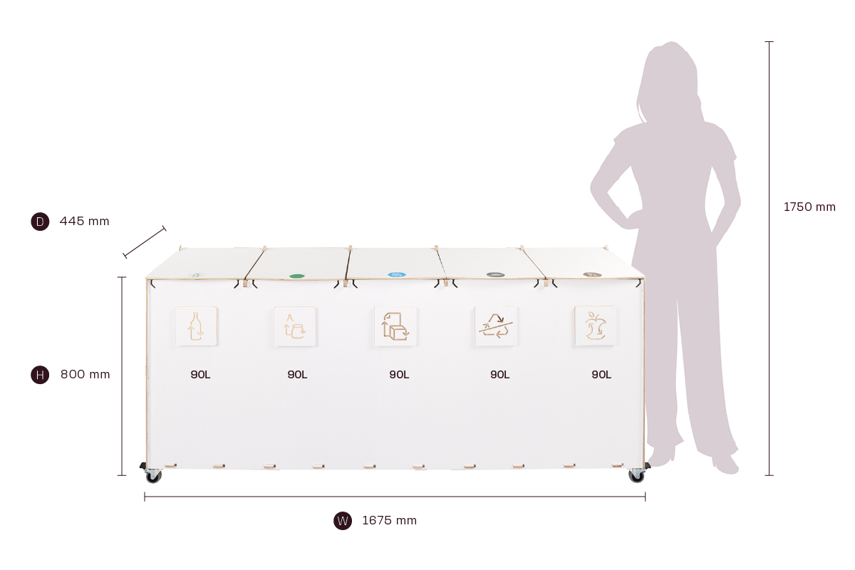 Med sin kompakta storlek och effektiva kapacitet kombinerar Sorta hållbara plywoodmaterial med funktionell design, vilket gör den till en pålitlig lösning för organiserad och ansvarsfull avfallshantering i professionella miljöer.