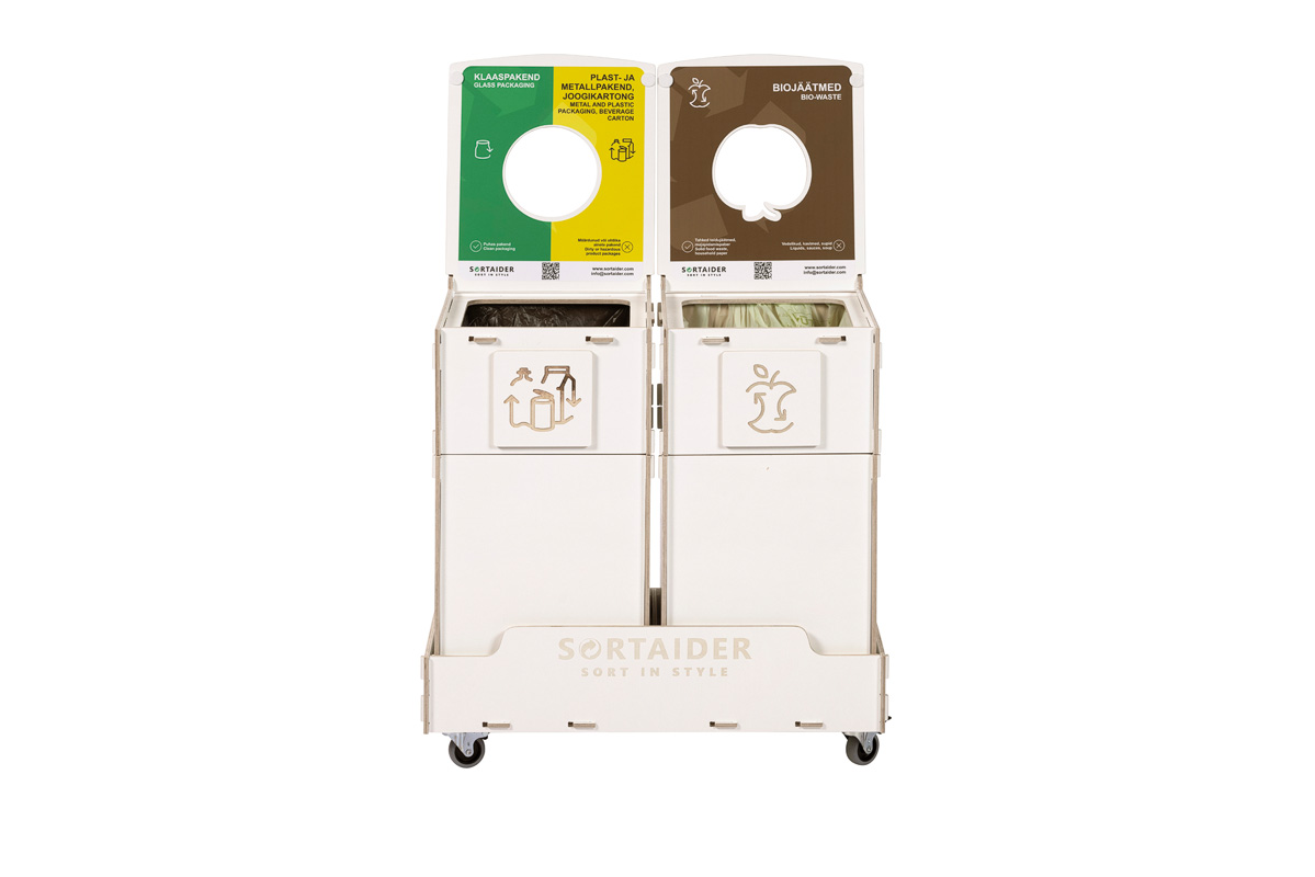 Utrustad med låsbara hjul, tydliga sorteringssymboler och behållare av högkvalitativ plywood förenar den praktisk funktion med nordiskt inspirerad design. En Sortaider-produkt på 9,5 kg sparar cirka 10,3 kg CO₂, vilket gör varje behållare till ett betydelsefullt steg mot hållbarhet.