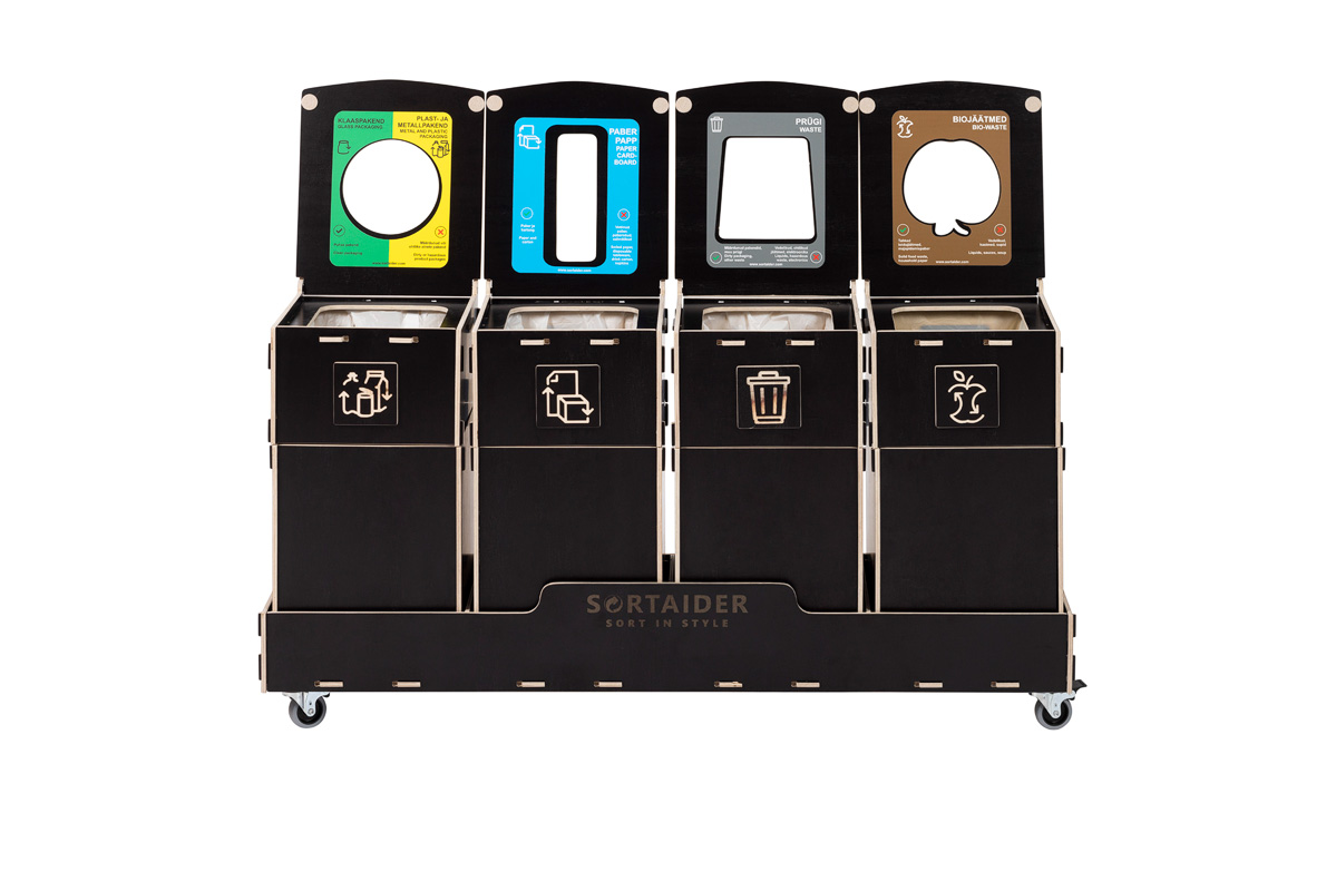 Sortaider är en elegant och kompakt avfallssorteringsstation. Med 1–5 separata fack gör den avfallssorteringen smidig och effektiv på kontor, i skolor och i offentliga miljöer.