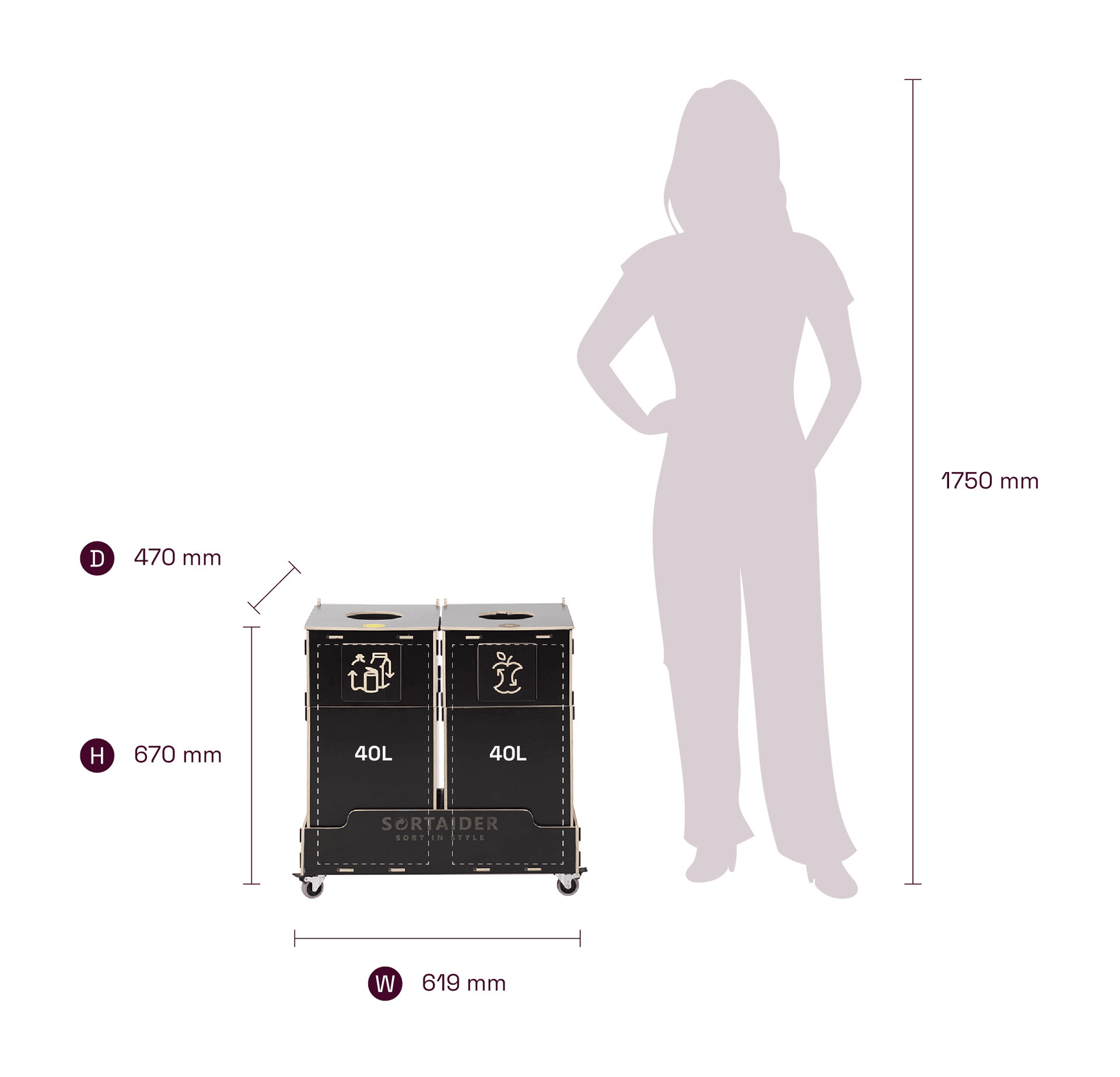 Utrustad med låsbara hjul, tydliga sorteringssymboler och behållare av högkvalitativ plywood förenar den praktisk funktion med nordiskt inspirerad design. En Sortaider-produkt på 15,7 kg sparar cirka 16,5 kg CO₂, vilket gör varje behållare till ett meningsfullt steg mot hållbarhet.