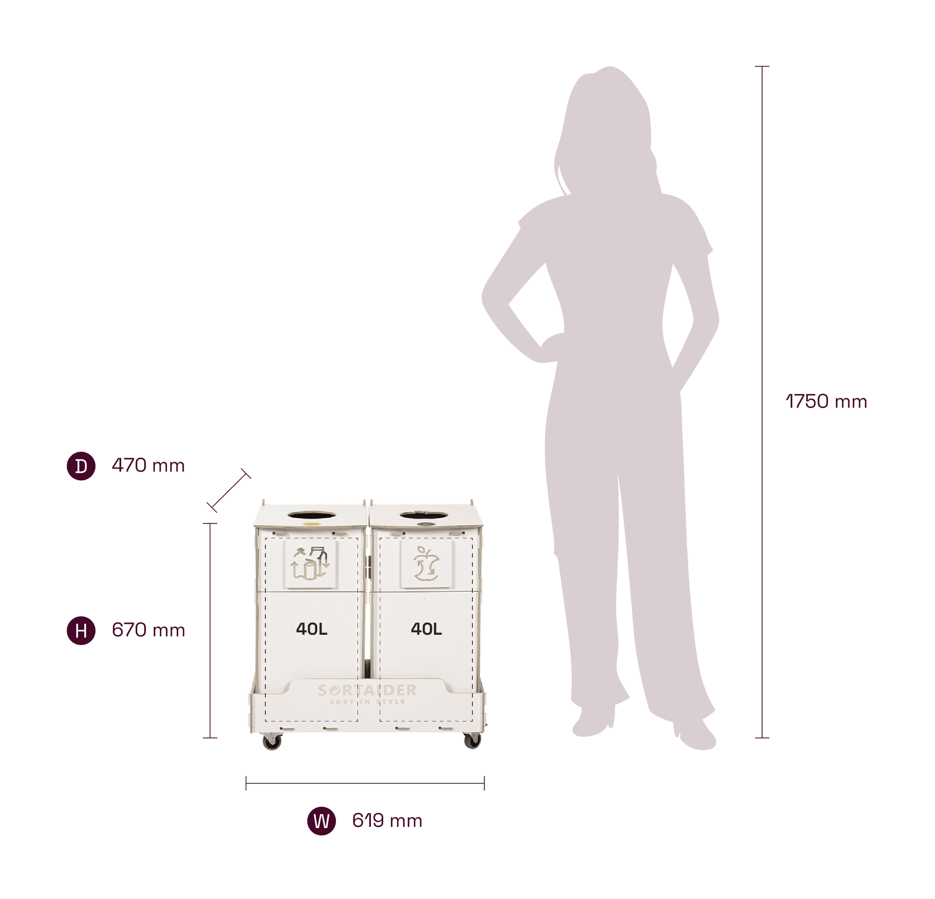 Utrustad med låsbara hjul, tydliga sorteringssymboler och behållare av högkvalitativ plywood förenar den praktisk funktion med nordiskt inspirerad design. En Sortaider-produkt på 15,7 kg sparar cirka 16,5 kg CO₂, vilket gör varje behållare till ett meningsfullt steg mot hållbarhet.