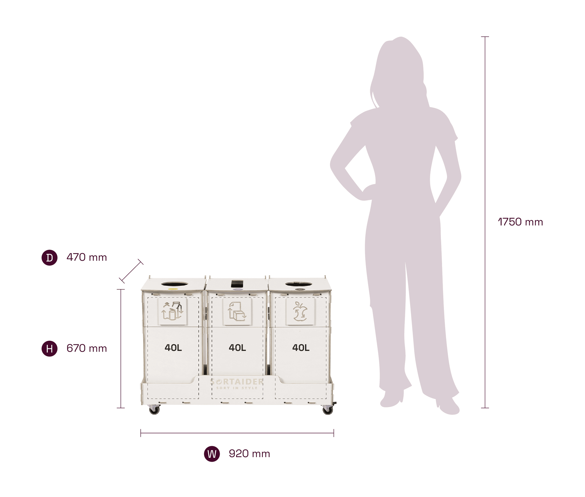 Utrustad med låsbara hjul, tydliga sorteringssymboler och behållare av högkvalitativ plywood förenar den praktisk funktion med nordiskt inspirerad design. En Sortaider-produkt på 23,2 kg sparar cirka 24 kg koldioxid, vilket gör varje behållare till ett meningsfullt steg mot hållbarhet.