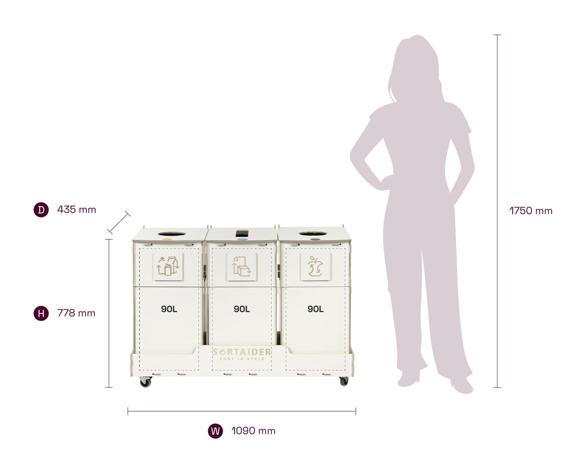 Utrustad med låsbara hjul, tydliga sorteringssymboler och behållare av högkvalitativ plywood förenar den praktisk funktion med nordiskt inspirerad design. En Sortaider-produkt på 28,3 kg sparar cirka 29,1 kg CO₂, vilket gör varje behållare till ett meningsfullt steg mot hållbarhet.