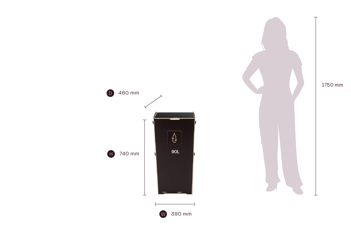 Återvinningsinstruktioner på engelska, produktbild Sorta 90BL