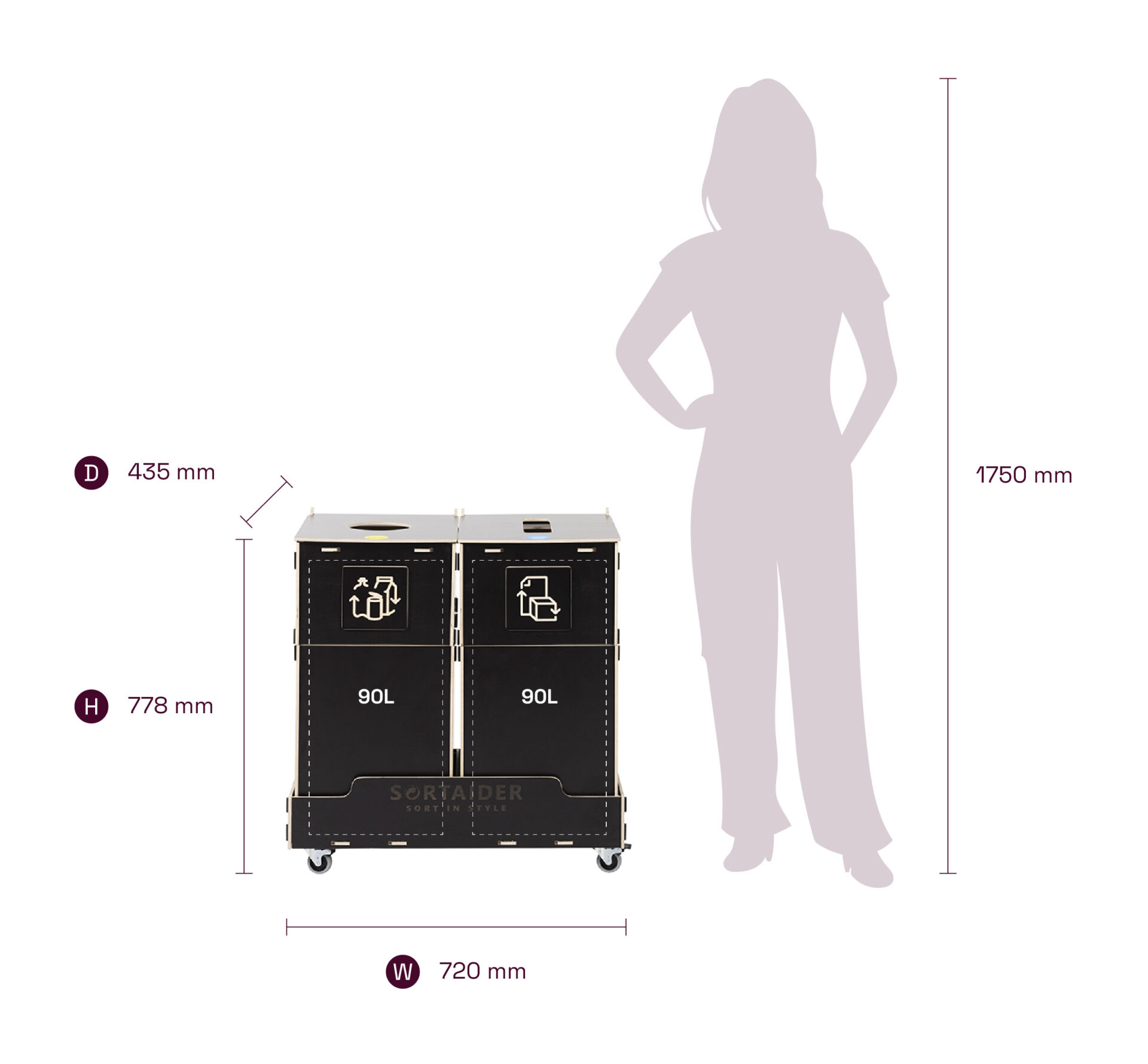 Utrustad med låsbara hjul, tydliga sorteringssymboler och behållare av högkvalitativ plywood förenar den praktisk funktion med nordisk design. En Sortaider-produkt på 19,2 kg sparar cirka 20 kg koldioxid, vilket gör varje behållare till ett meningsfullt steg mot hållbarhet.