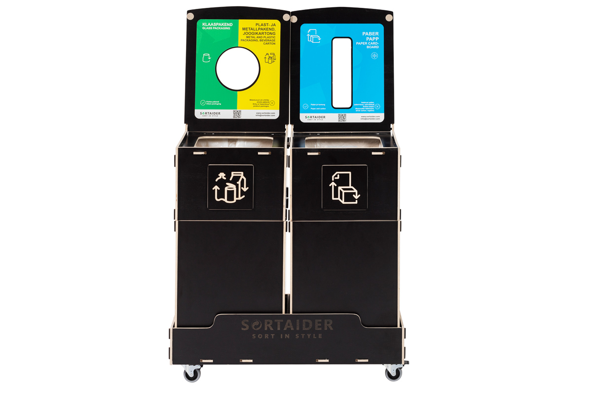 Sortaider är en elegant och kompakt avfallssorteringsstation. Med 1–5 separata fack gör den avfallssorteringen smidig och effektiv på kontor, i skolor och i offentliga miljöer.
